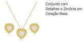 CONJ DETALHES EM ZIRCÔNIA E CORAÇÃO ROSA- SEMI-JOIA-FOLHEADO OURO 18- RECEBA BÔNUS 100% EM CONFCOIN